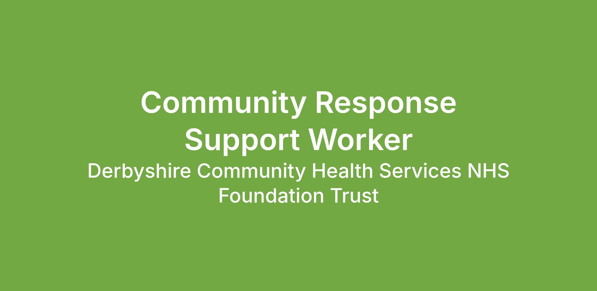 We have a band 3 Community Support Worker position in our Community Response Team based at Walton Hospital, Chesterfield.