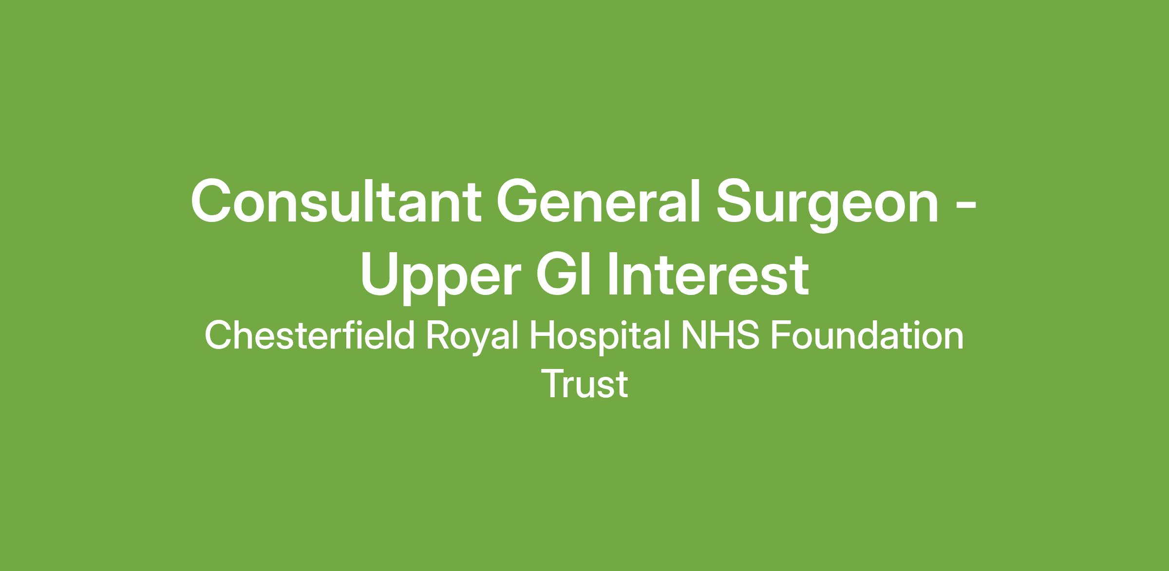 The appointment is for a Locum Consultant in General Surgery within our friendly and well-established Surgical Specialties Division at Chesterfield Royal Hospital. There will be opportunity to work with colleagues in the development of new and effective patient care pathways in a department which strives to provide excellent services.