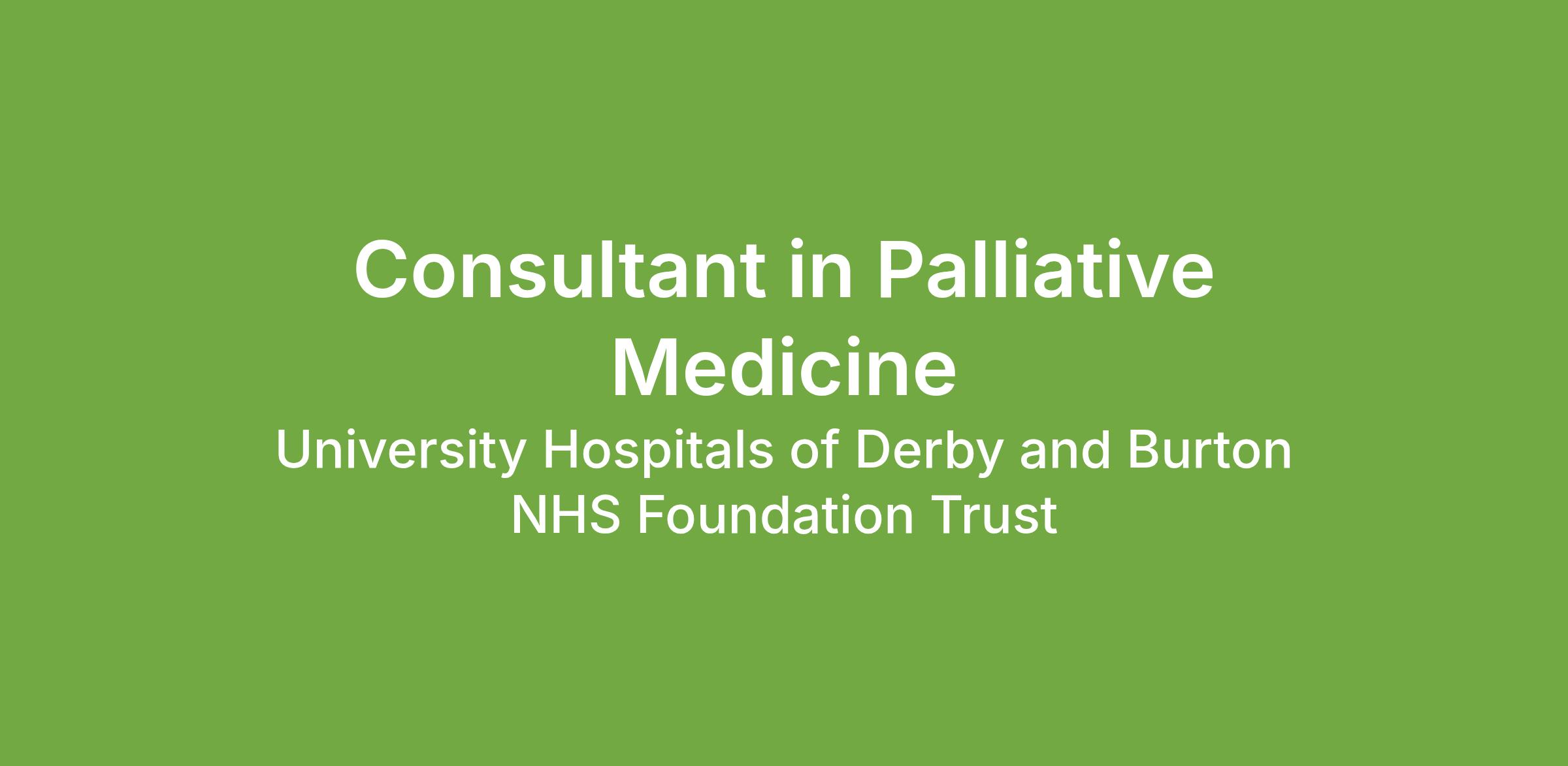 This is an exciting opportunity to join a large, friendly and proactive Palliative Medicine Department at the University Hospitals of Derby and Burton.
