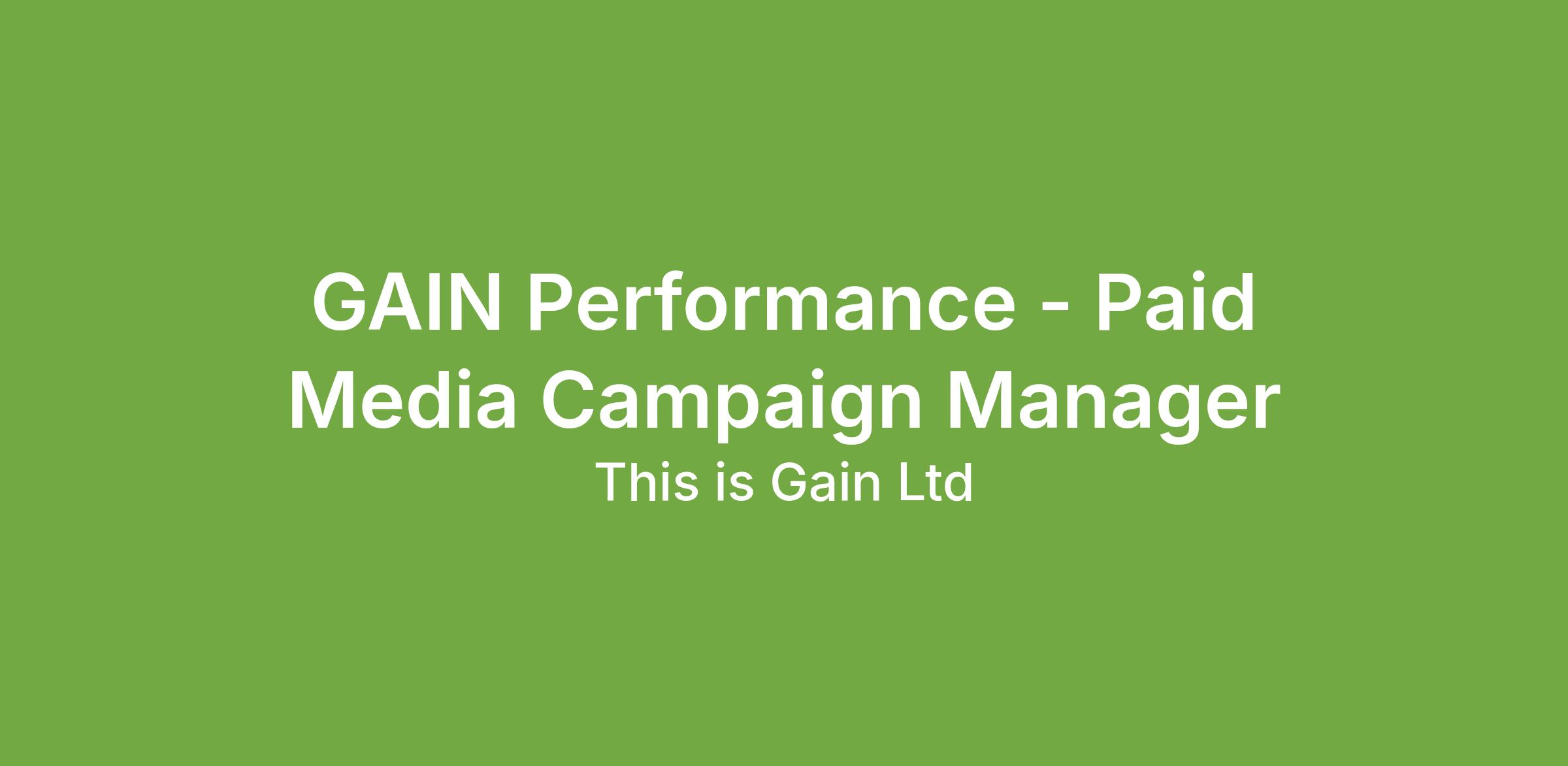 Role: GAIN- Performance- Campaign Manager