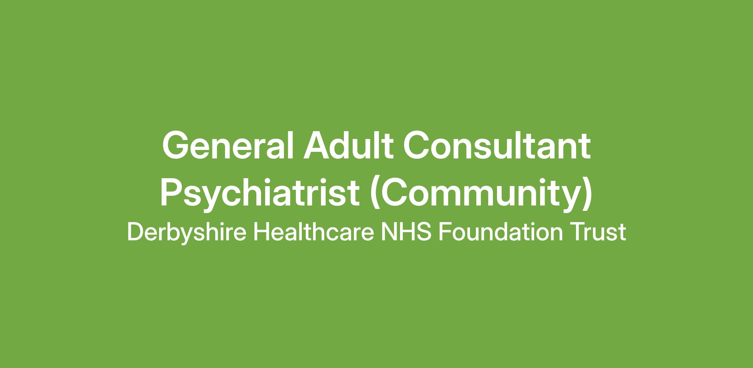 This is an exciting opportunity for a full time (10PA ) Consultant in General Adult Psychiatry for the Derby City Wellbeing Service.