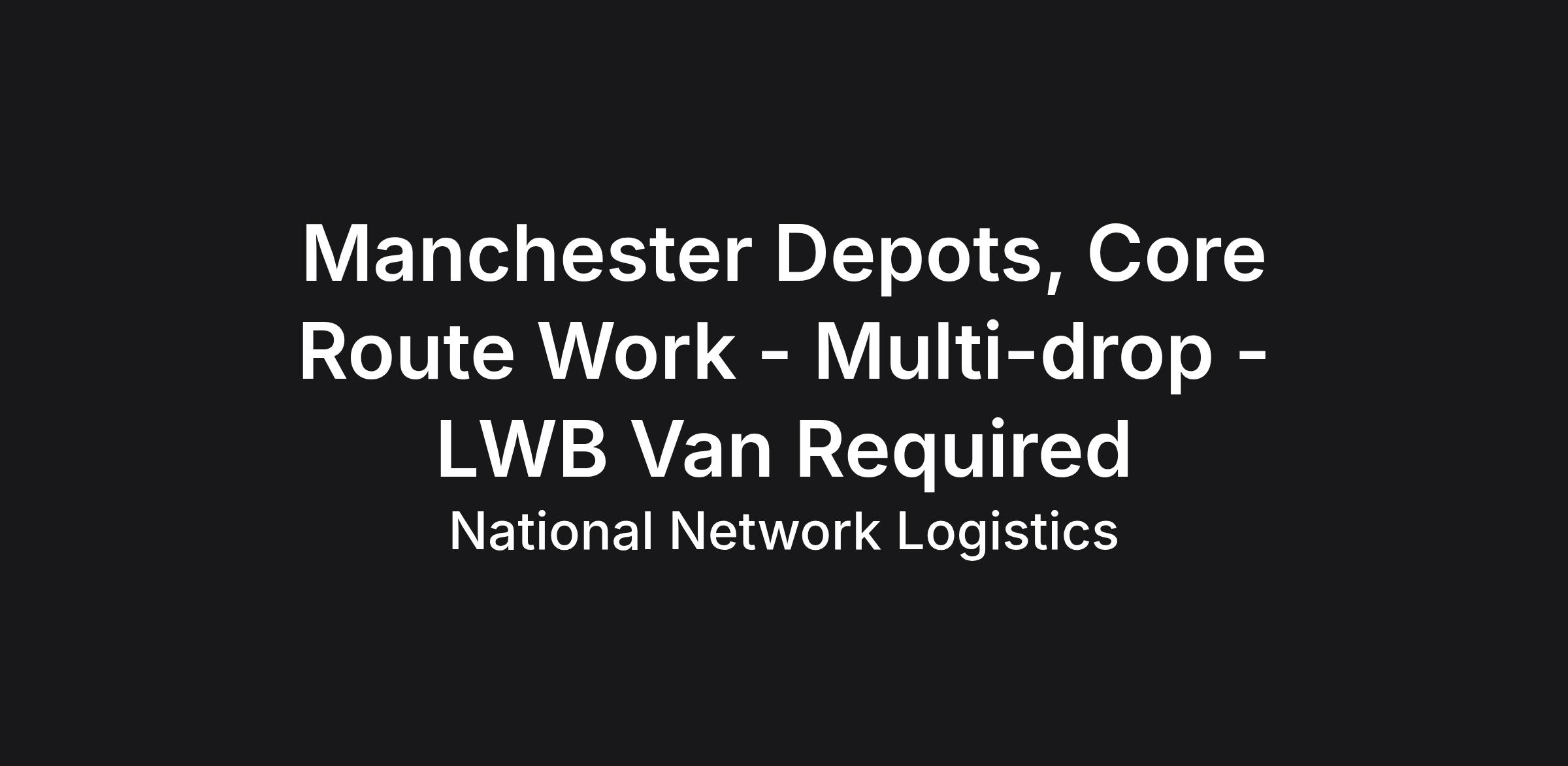 Join us at our Manchester sites for Multi-Drop work - Long Term Opportunities Available!As a trusted delivery partner for DHL, UPS, FedEx and other major carriers, we offer steady local routes, high volumes, and reliable weekly pay. No chasing invoices. No uncertainty. Just solid, ongoing work.
