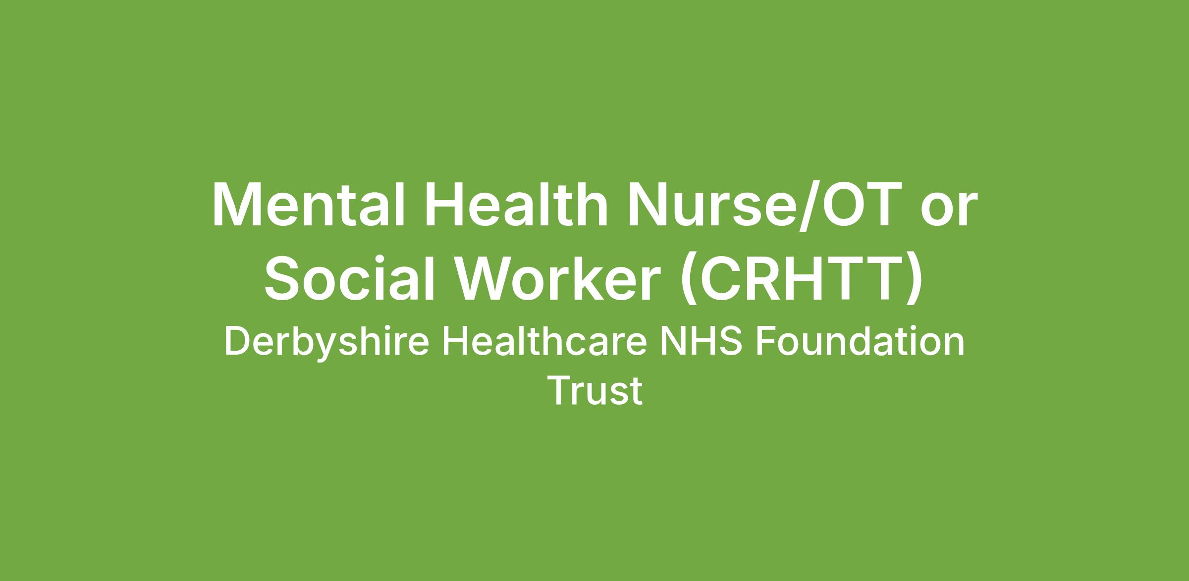 Are you a dynamic, confident and motivated Mental Health Nurse/Occupational Therapist or Social Worker with excellent communication skills with the ability to assess and lead on clinical decision making?
