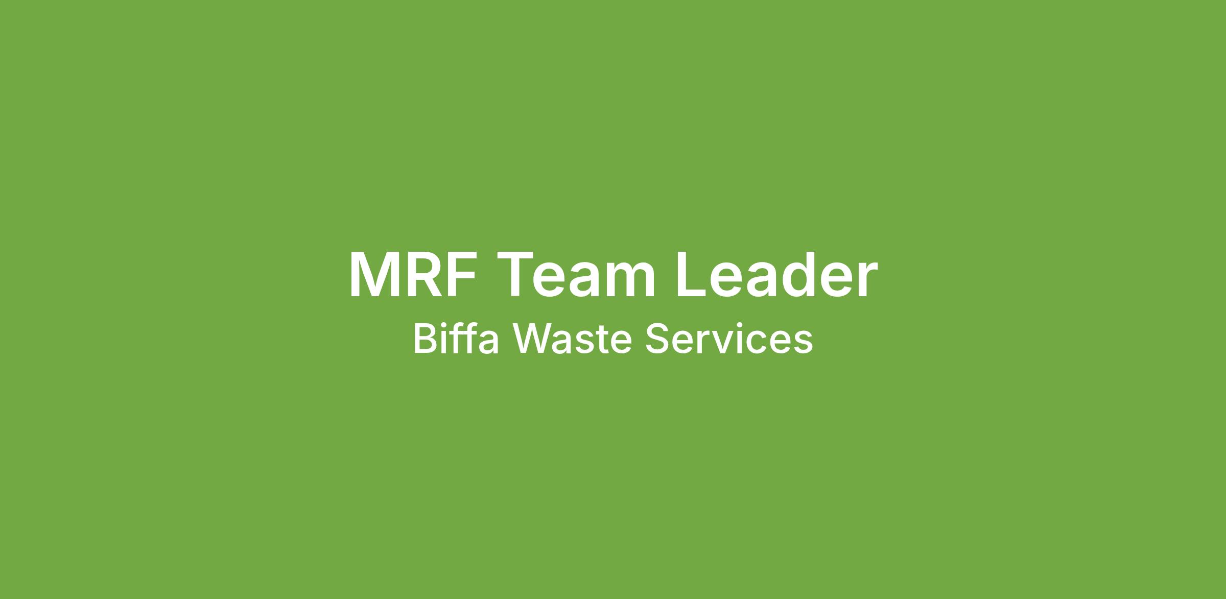 MRF Supervisor - Rotherham