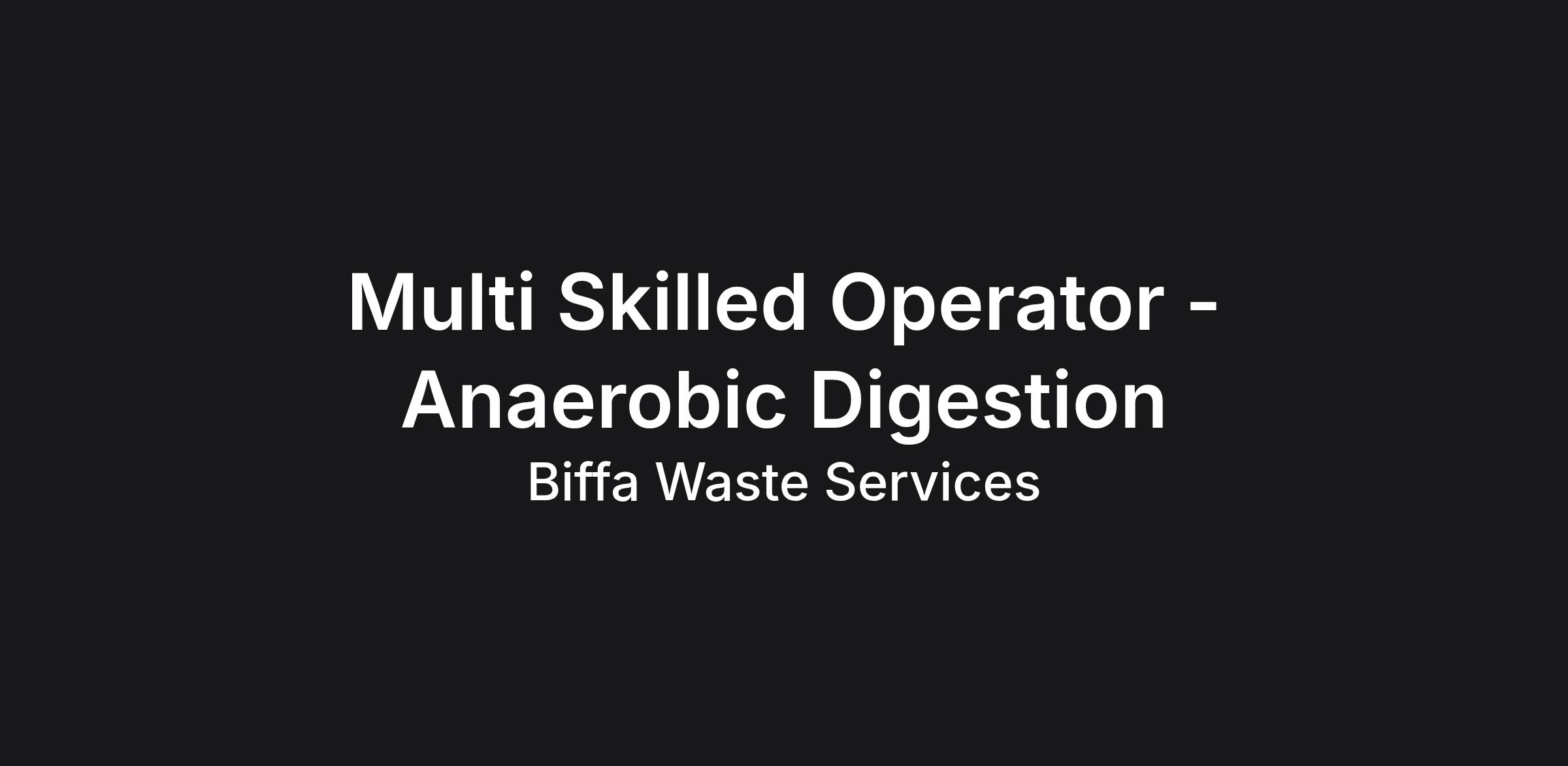 The Anaerobic Digestion Multi Skilled Operator is responsible for the operation of the anaerobic digestion process and mobile plant, as well as the housekeeping and maintenance activities, in compliance with site licences/PPC permits, health and safety legislation, ABPR and planning conditions and Company policies and procedures.