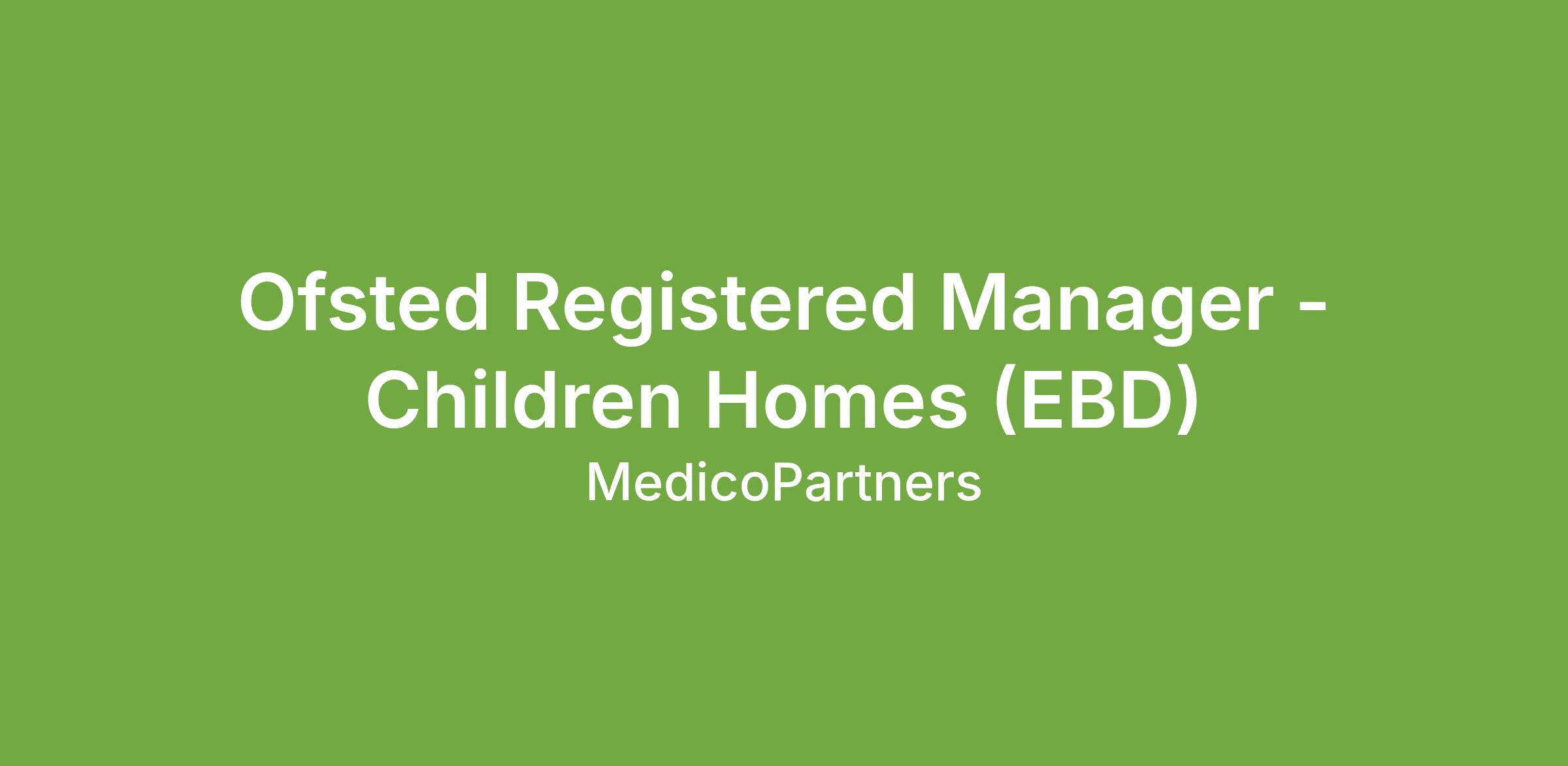 Ofsted Registered Manager - Children Homes (EBD)