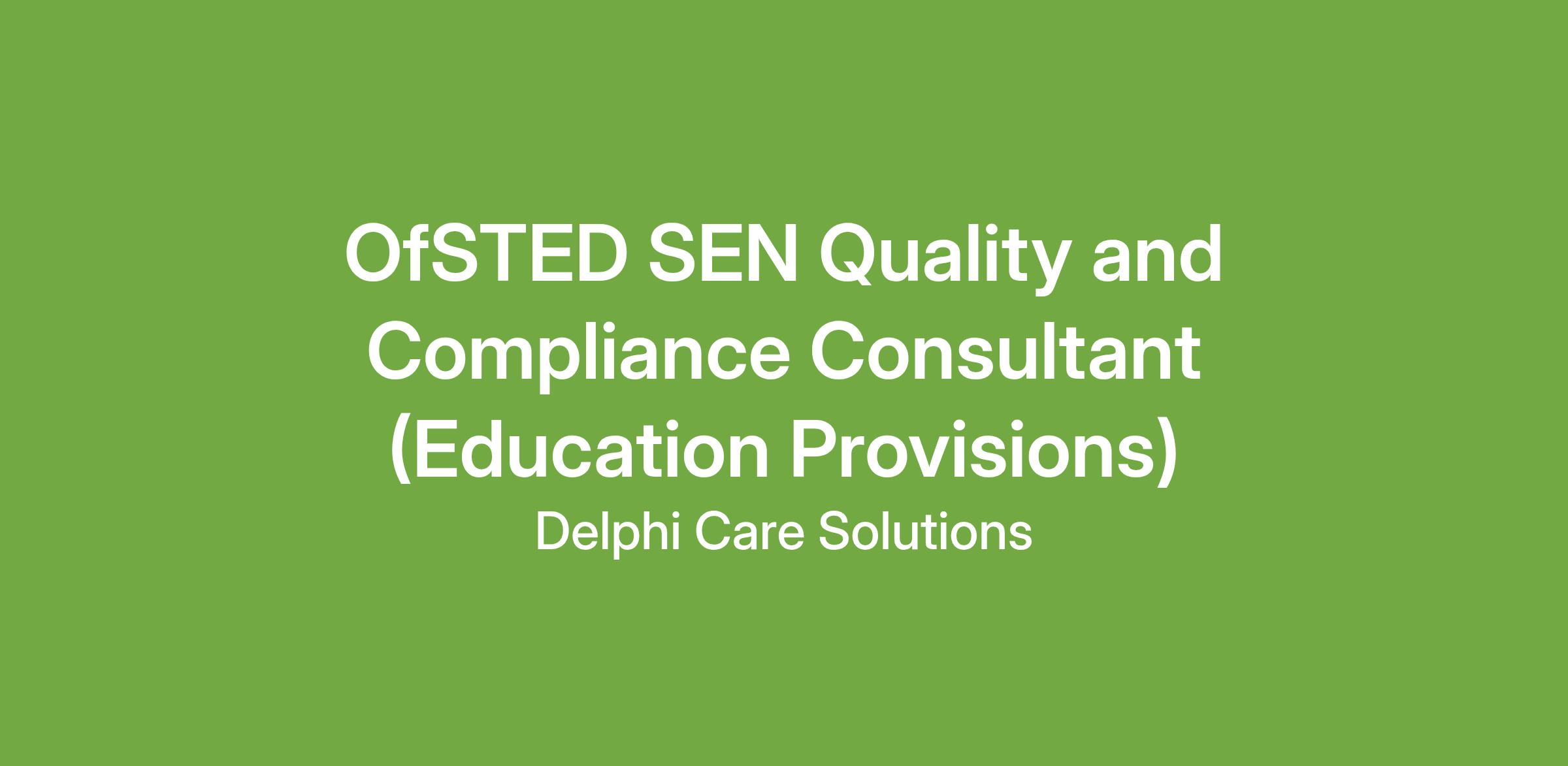 Job Title: OfSTED SEN Quality and Compliance Consultant (Education Provisions - Contractor role)