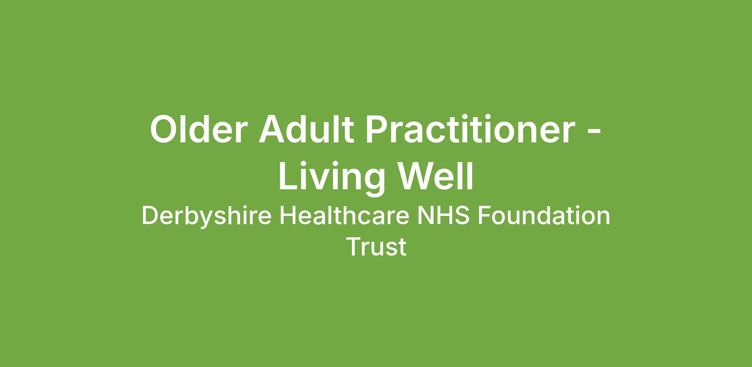 Want to make a real difference and have a truly rewarding career? Join 'Team Derbyshire Healthcare' and become part of a talented, compassionate and enthusiastic workforce committed to a vision of ‘making a positive difference in people's lives’.