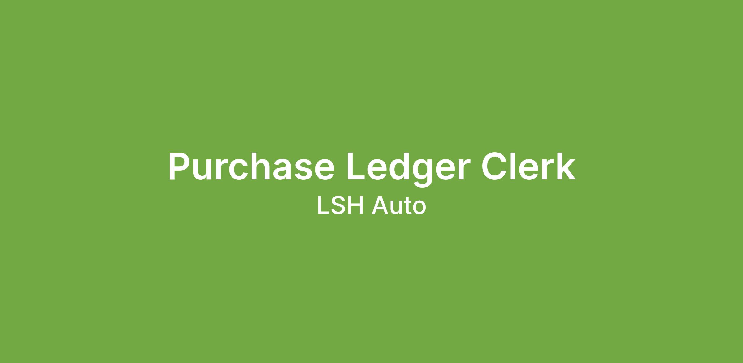 LSH Auto is searching for a dedicated and detail-oriented Purchase Ledger Clerk to