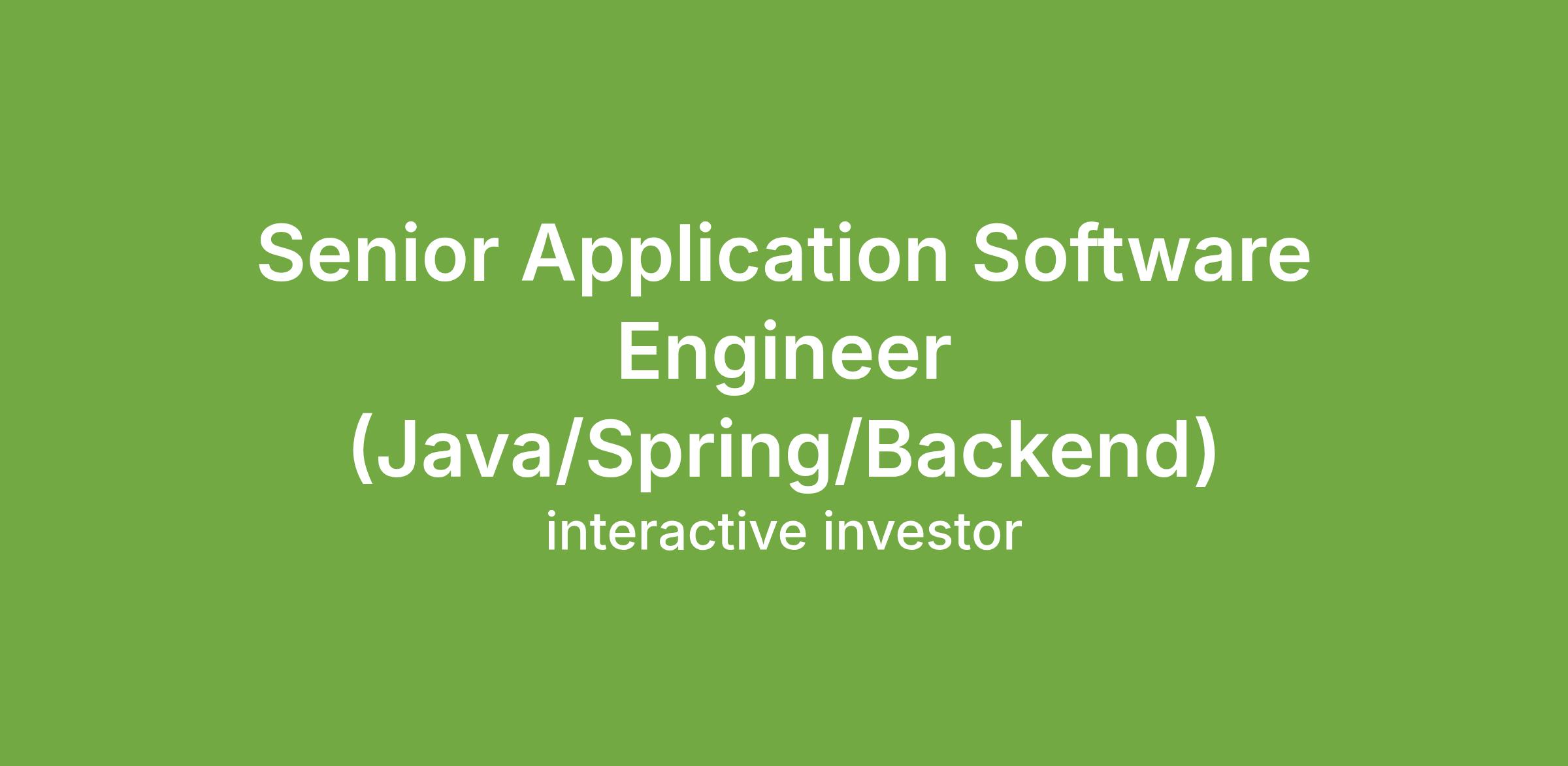 Job Title: Senior Application Software Engineer (Java/Spring/Backend)