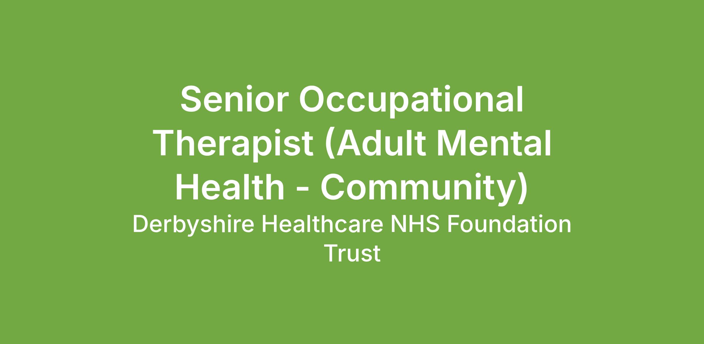 The Occupational Therapist in post will be working within a community adult mental health service, providing specialist assessment and treatment to service users with a range of mental health conditions.