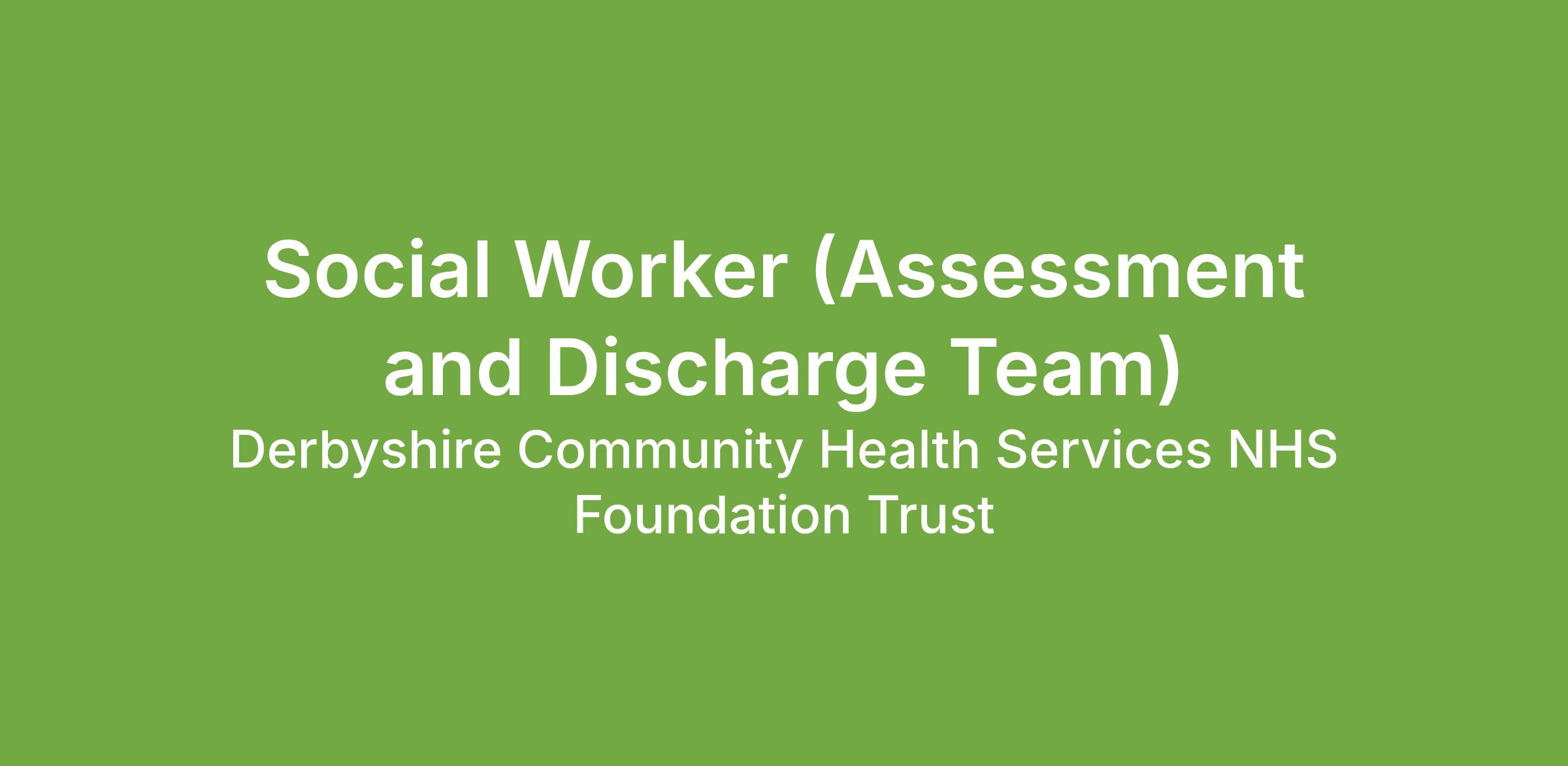 Derbyshire County Council are inviting applications for 2 x qualified social workers to work in our established Community Hospital and Community Support Bed Assessment and Discharge Team.